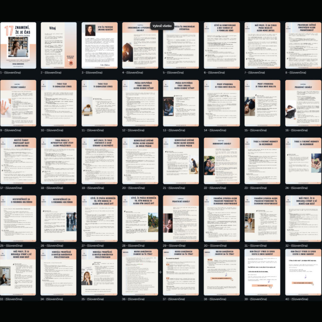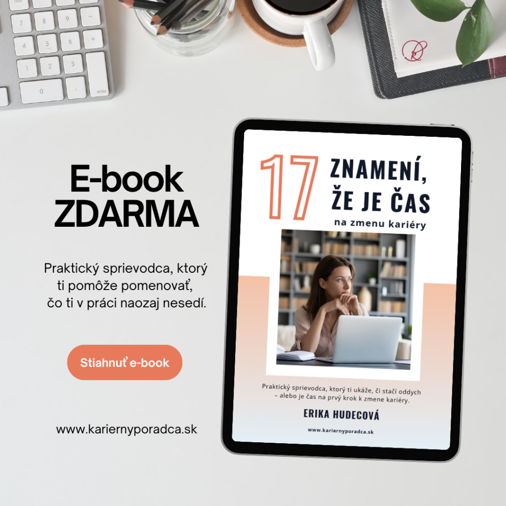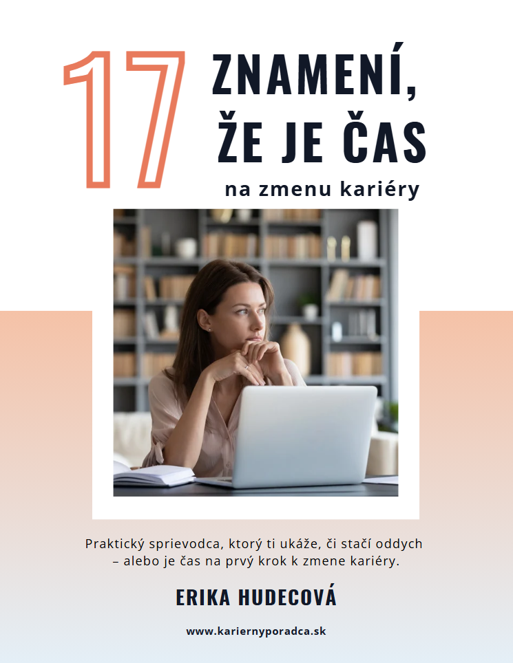 Ak chceš mať všetky znamenia, otázky a mini kroky pekne pokope a chceš rovno prejsť k sprievodcovi, stiahni si e-book zdarma: 17 znamení, že je čas na zmenu kariéry