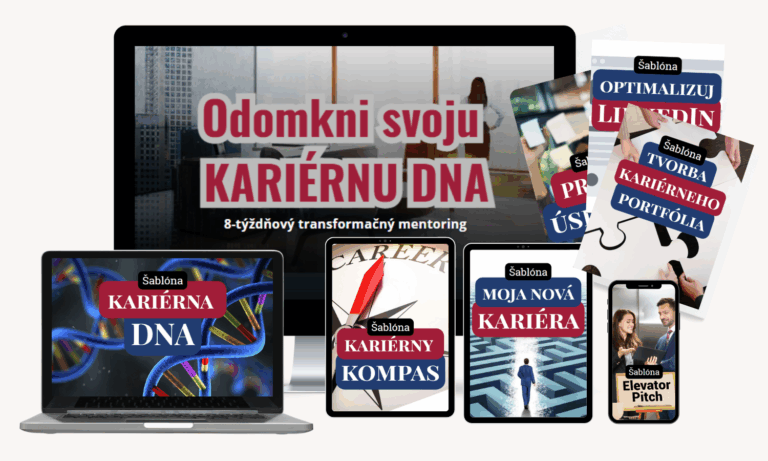 - Kurz Odomkni svoju kariérnu DNA8-týždňový transformačný program: video lekcie + praktické cvičenia, ktoré ťa prevedú celým procesom od sebapoznania až po nový kariérny plán.